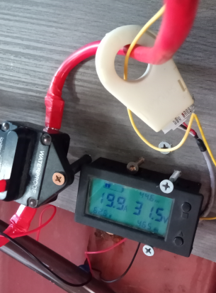 The amps coming into the system is 32Amps, which is good for a cloudy day. The inverter is using 19 amps, so that leaves 13 A going into the battery cells.